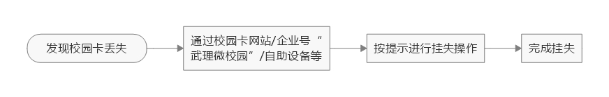 在线挂失:登录学校的校园网站或者武理微校园,在校园卡服务中心选择在线挂失功能,并输入您的校园卡查询密码核验身份确认挂失。