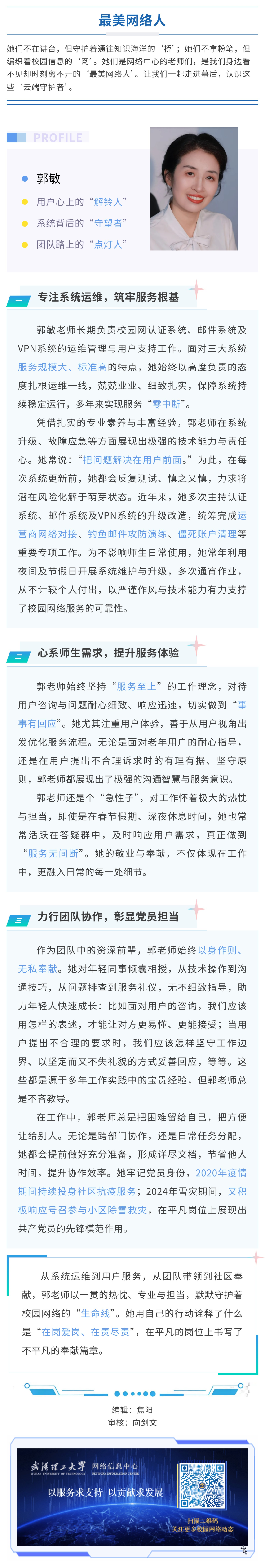 【网络中心】最美网络人——郭敏:以专业与热忱守护校园网络服务的奉献者
